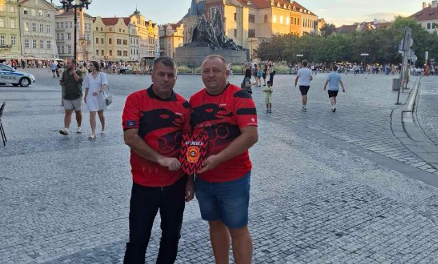 Zëvendëspresidenti i Drenicës, Haxhi Reci i shoqëruar nga miq e bashkëpunëtorë po e ndjek nga afër ndeshjen Ukrainë-Shqipëri.