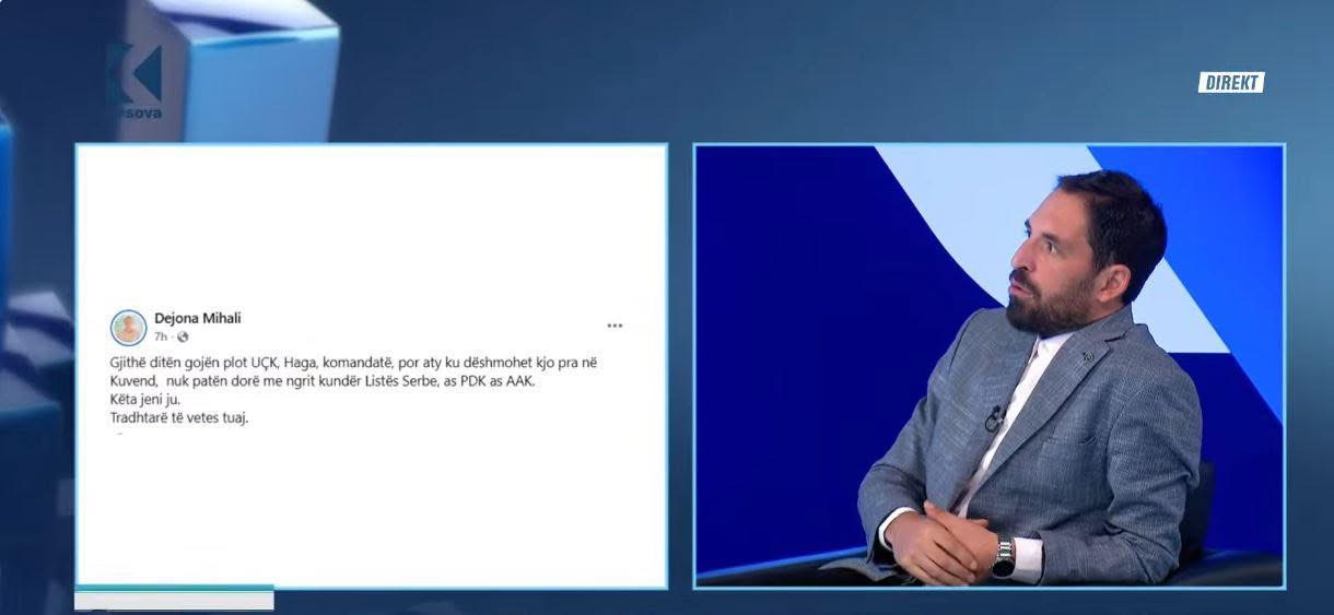Analisti politik, Azdren Shala, e ka komentuar statusin e Dejona Mihalit të VV-së e cila tha se në seancën e sotme konstituive “nuk patën dorë me ngrit kundër Listës Serbe as PDK, as AAK. Tradhtarë të vetes tuaj”.
