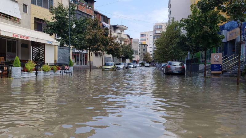 Shiu bllokon kanalizimet në Durrës, ujërat e zeza dalin në sipërfaqe