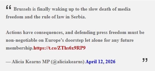 “Brukseli më në fund po zgjohet ndaj vdekjes së ngadaltë të lirisë së medias dhe sundimit të ligjit në Serbi”, shkroi ajo në një postim në X.
