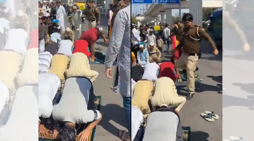 Shokuese në Indi | Po falnin namazin në mes të rrugës, polici zë me shkelma besimtarët