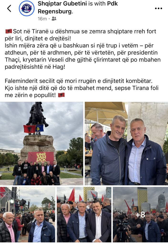 “Sot në Tiranë u dëshmua se zemra shqiptare rreh fort për liri, dinjitet e drejtësi! Ishin mijëra zëra që u bashkuan si një trup i vetëm – për atdheun, për të ardhmen, për të vërtetën, për presidentin Thaçi, kryetarin Veseli dhe gjithë çlirimtarët që po mbahen padrejtësisht në Hagë!