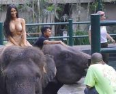 Kim Kardashian me bikini sipër elefantit