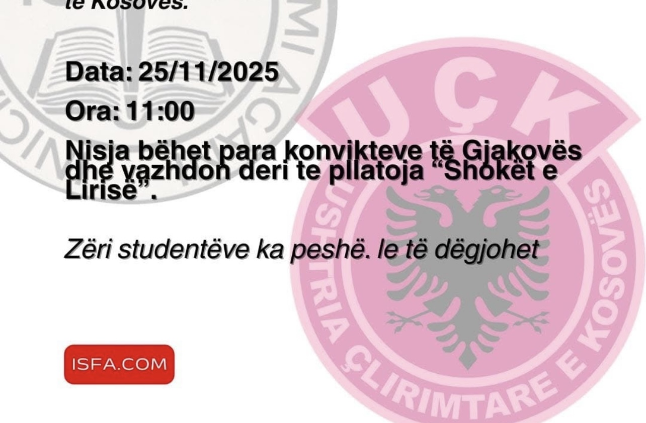 Studentët e Gjakovës organizojnë protestë paqësore më 25 nëntor kundër padrejtësive ndaj krerëve të UÇK-së në Hagë