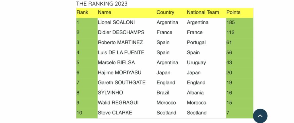 Instituti i Statistikave të Futbollit, IFFHS ka publikuar renditjen me trajnerët më të mirë të vitit 2023 të ekipeve Kombëtare.