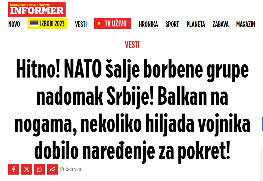 Tabloidi beogradas Informer, i afërt me Aleksandër Vuçiqin, në faqen e tij të parë ka dhënë lajmin se në Bullgari, afër kufirit me Serbinë, po ndërtohet me ngut infrastruktura me vlerë gjashtë miliardë euro për të strehuar rreth 5000 ushtarë të Aleancës së NATO-s.