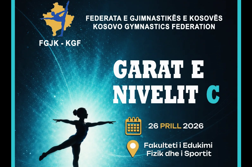 Federata e Gjimnastikës e Kosovës organizon Garat e Nivelit C më 26 prill 2026 në hapësirat e Fakultetit të Edukimit Fizik dhe Sportit.