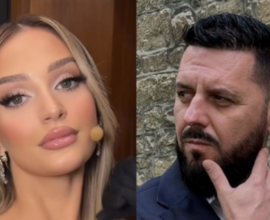 Këngëtarja ka tërhequr gjithë vëmendjen derisa po ecte përkrah bashkëshortit me një fustan elegant të çarë deri në bel.
