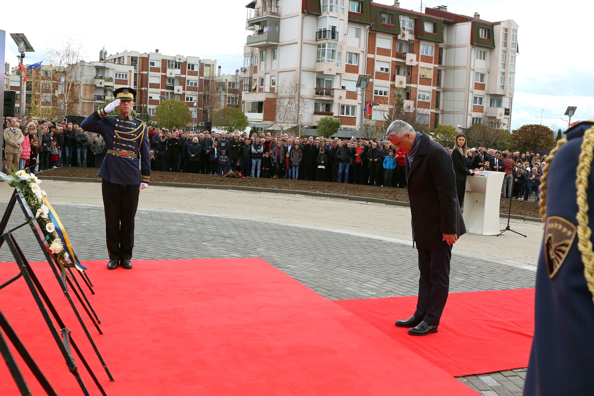“Në këtë shesh po vendosen emblemat e UÇK-së, identitetit dhe krenarisë së kombit shqiptar. Po vendosen shtatoret e kujtesës së krenarisë së kombit, por para së gjithash, edhe e mesazhit për të ardhmen e sigurt të shtetit të Kosovës dhe kombit shqiptar”, ka thënë presidenti Thaçi.