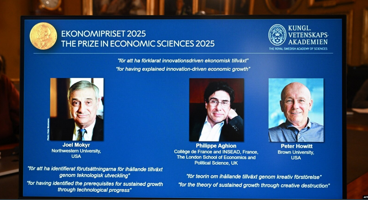Çmimin Nobel për Ekonomi sivjet e kanë fituar amerikano-izraeliti Joel Mokyr, Philippe Aghion nga Franca dhe Peter Howitt nga Kanadaja për punën e tyre mbi ndikimin e teknologjisë në rritjen e qëndrueshme ekonomike.