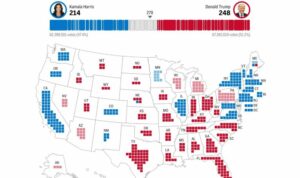Votuesit në Distriktin e 2-të të Kongresit të Maine, më konservatori nga dy distriktet e kongresit të shtetit, i dhanë një votë elektorale republikanit Donald Trump, duke e çuar numrin e votave në 248, derisa Camala Harrisin ende mbetet në 214 vota.