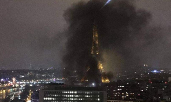 Rrugët e Parisit janë ndezur gjatë protestave të “jelekëve të verdha” në Paris, ku si pasojë e djegies së koshave dhe makinave kulla Eiffel është mbuluar nga një tym i zi.