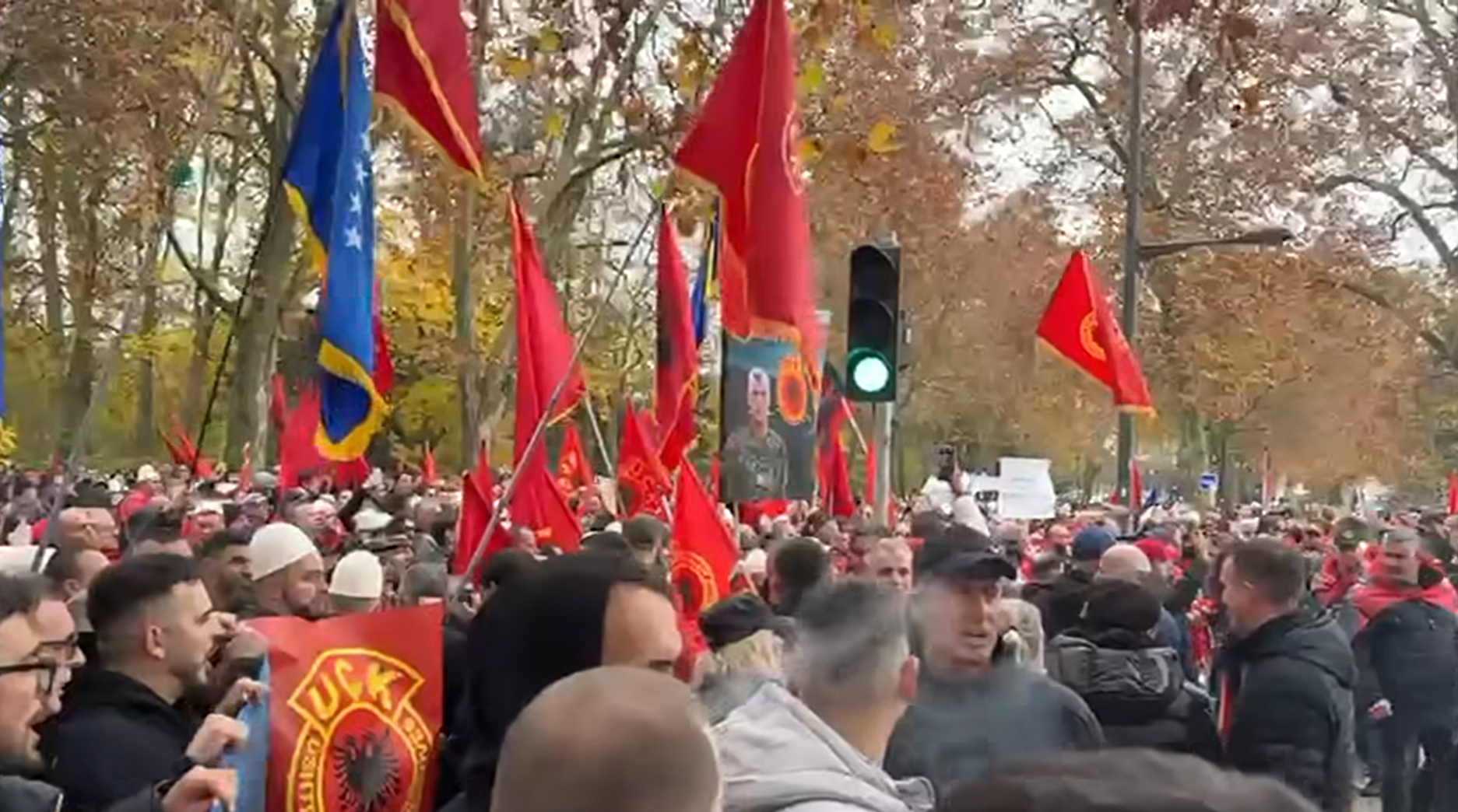 Protesta e radhës do të vazhdojë në Maqedoninë e Veriut. Në Strasburg, mijëra flamuj kuq e zi dhe thirrje “UÇK! UÇK!” po krijojnë një atmosferë që, siç thotë Hoxhaj, “po e tund qytetin”.
