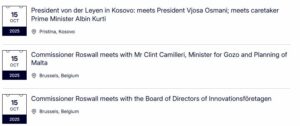 Sipas agjendës së publikuar në faqen e institucionit të cilin ajo e drejton, Von der Leyen gjatë qëndrimit në vendin tonë të mërkurën do të takohet me presidenten, Vjosa Osmani dhe kryeministrin në detyrë, Albin Kurti.
