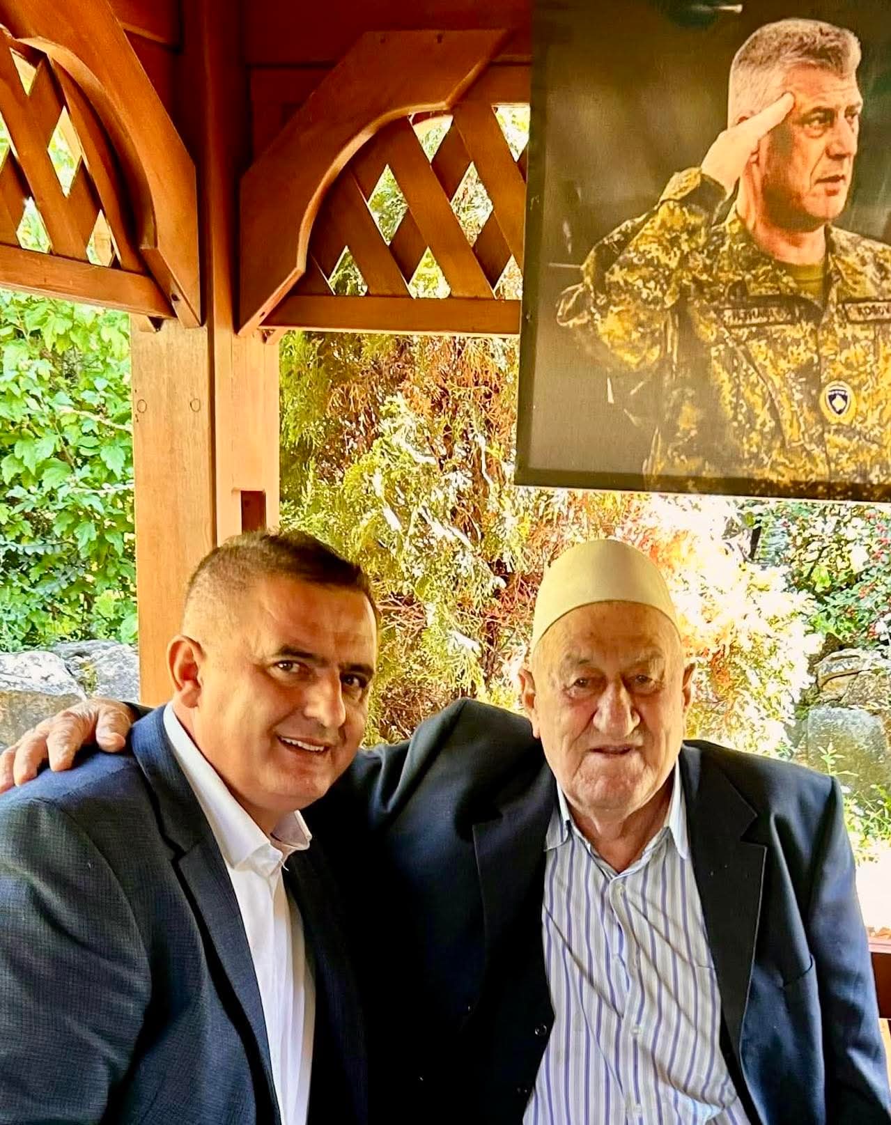 Veprimtari Sali Bislimi, i cili jeton në Zvicër, ka uruar 28 Nëntorin me një fotografi të përbashkët me babain e ndjerë të ish-presidentit Hashim Thaçi, bacën Haxhi.