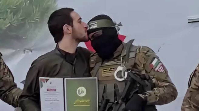Gjatë një shkëmbimi pengjesh, në një moment dramatik, ish-pengu izraelit Omer Shem Tov u pa duke puthur në ballë dy anëtarë të Hamasit ndërsa përshëndeste në skenë.
