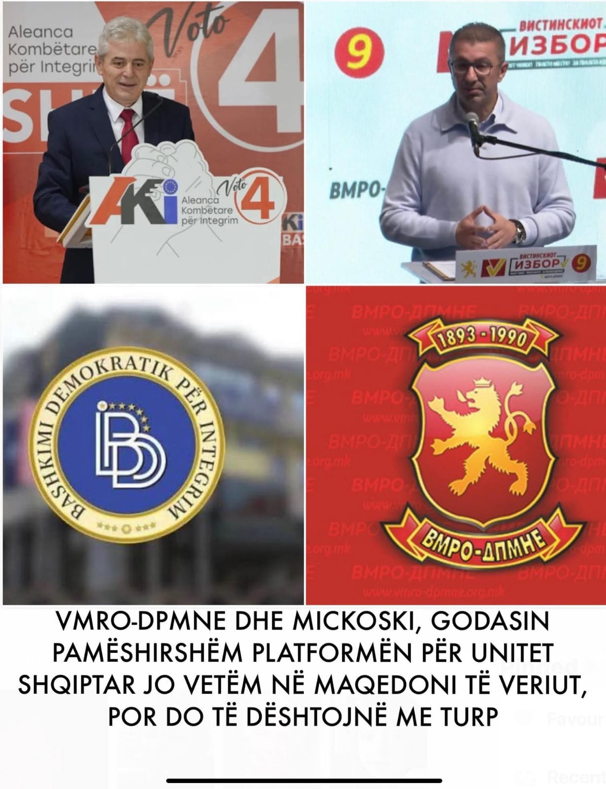 VMRO-DPMNE DHE MICKOSKI, GODASIN PAMËSHIRSHËM PLATFORMËN PËR UNITET SHQIPTAR JO VETËM NË MAQEDONI TË VERIUT, POR DO TË DËSHTOJNË ME TURP