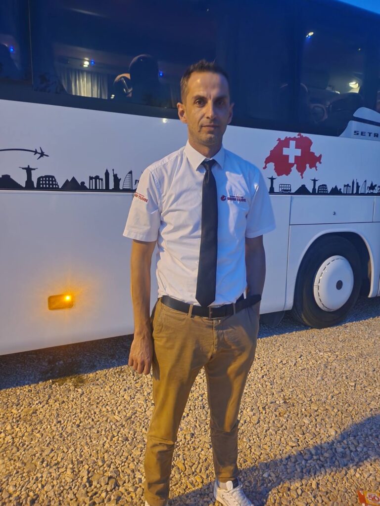Valmir Gashi, 35 vjeç nga Prishtina, vozitës me përvojë disa vjeçare në Agjencionin Turistik “Sharr Travel” bën mbi 700 km në ditë vozitje të pandalshme, por, me shumë vullnet.