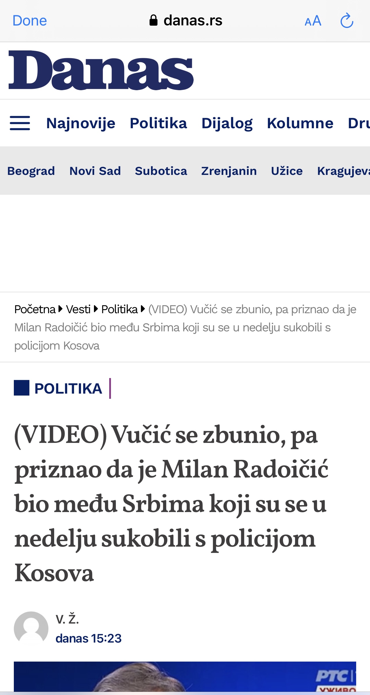 Vuçiq pranoi se Milan Radoiçiq ishte në mesin e serbëve që u përleshën me policinë e Kosovës të dielën