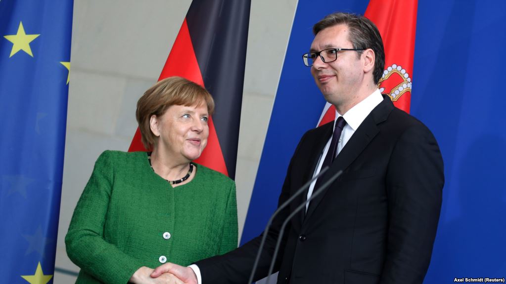 Merkeli, në anën tjetër, e ka mirëpritur “suksesin ekonomik të Serbisë” dhe ka theksuar se “dëshiron të ndihmojë që në rajonin e Ballkanit Perëndimor të ruhet paqja dhe stabiliteti”.