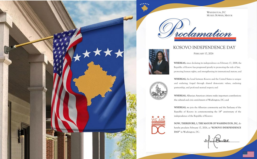 TANI, PRANDAJ, UNË, KRYETARJA E BASHKISË SË WASHINGTON, DC, shpall 17 shkurtin 2026 si “DITA E PAVARËSISË SË KOSOVËS” në Washington, DC.