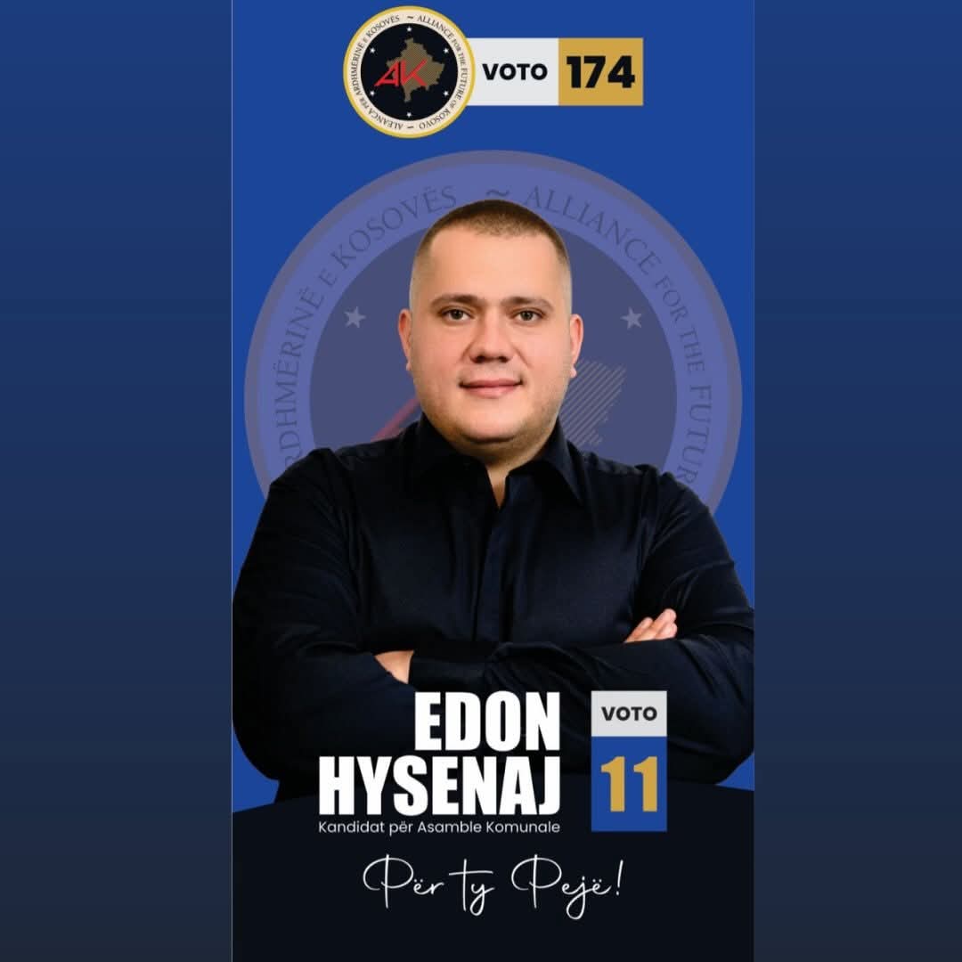 Në Pejë për Asamblenë Komunale garon edhe Edon Hysenaj si kandidat i Aleancës për Ardhmërinë e Kosovës (AAK).