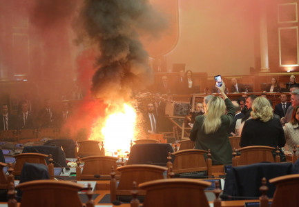 As kontrollet e shtuara në hyrje të Kuvendit nuk i kanë ndaluar deputetët e opozitës të merrnin edhe këtë seancë flakadanët, të cilët i kanë ndezur në nisje të seancës plenare.